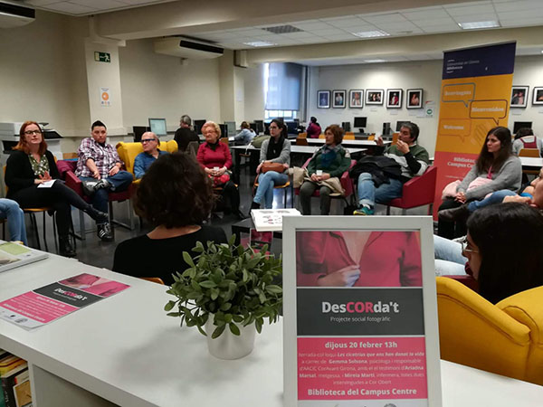 La Gemma Solsona, psicòloga de l’Associació de Cardiopaties Congènites i responsable de la delegació de Girona de l’entitat, ha agraït a la Universitat de Girona i, concretament, als professionals que porten la biblioteca, La Irene, l’Anna i en Gustau, pel seu interès en la mostra fotogràfica desCORda’t i l’acolliment que ens han donat.