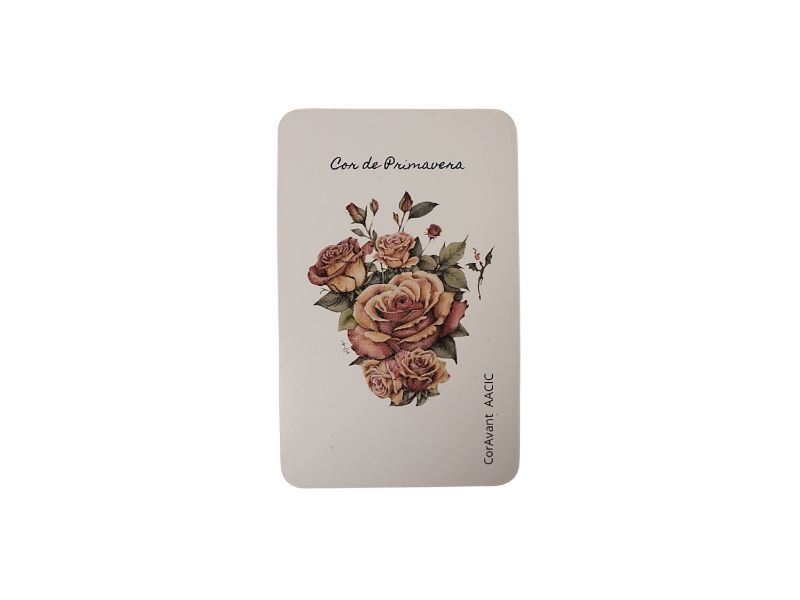- Rosa Cor: Una rosa molt especial amb un disseny monocromàtic, d’estil minimalista i amb un toc vintage. La Lourdes ens l’explica així: “Volia que estiguessin presents tant la rosa com els llibres en una única il·lustració, i per descomptat havia de portar un cor. Així va néixer la “Rosa Cor” com a representació de l’amor i de la vida. Les paraules, com totes les coses importants de la vida, són més boniques quan neixen i surten del cor. I això és el que he volgut representar. El color fa al·lusió a la rosa i a la sang que bombeja aquest cor. També a la sang del drac de la qual va brotar el roser, segons la llegenda. Vaig decidir que les lletres sortissin sense ordre ni sentit, però que amaguessin tres paraules per crear un petit joc amagat. Les has trobat? Segur que sí!”