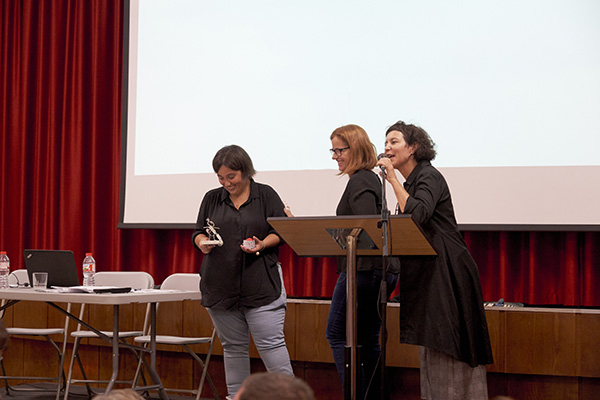 A continuación, Gemma Solsona, psicóloga de la AACIC, y Angeles Garcia de Xaropclown, las dos entidades beneficiarias del reto, dedicaron unas palabras al público asistente. Gemma y Angeles regalaron una orquídea, el tac-tac de AACIC y una nariz de payaso a Nuri en agradecimiento de ser las entidades beneficiarias de su reto.