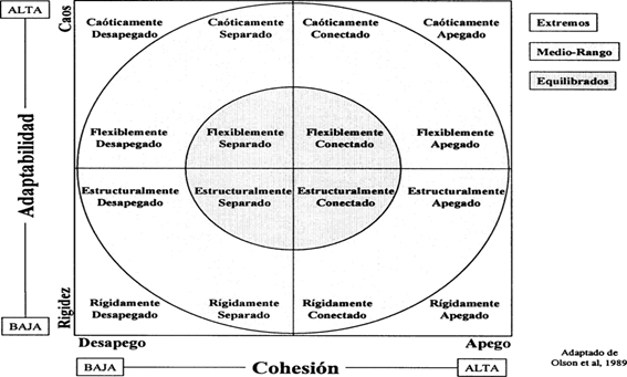 Dinámicas familiares con más puntuación a partir de los 4 factores de adaptabilidad y 4 factores de cohesión según el Modelo Circumplex de Olson